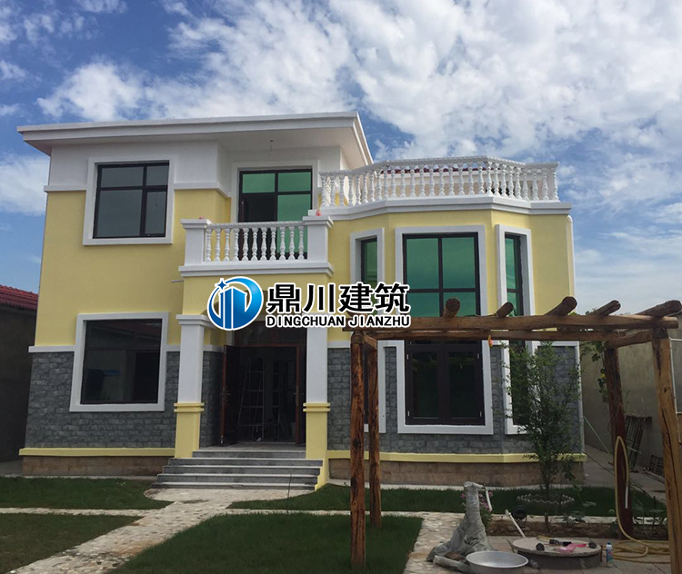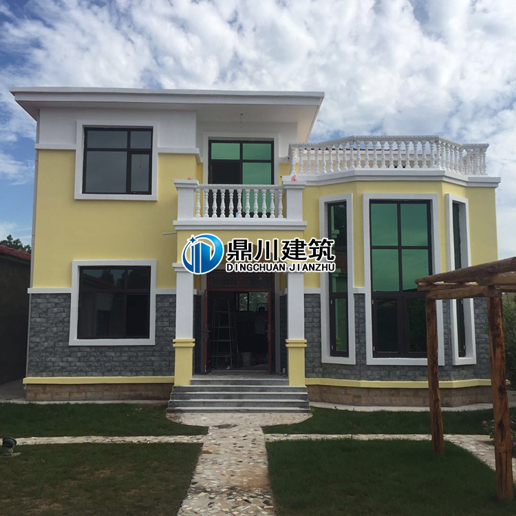 這是一款簡歐風(fēng)格的新農(nóng)村二層復(fù)式帶露臺別墅設(shè)計。在原設(shè)計中房屋屋頂是個斜頂形式的,這個戶主在購買了圖紙之后,考慮到農(nóng)村晾曬東西和易于觀景等需求,在施工的時候做了改動,將斜頂改成了平頂,但是整體效果出來卻一點都不亞于別墅設(shè)計效果圖。再加上這款設(shè)計中包含的眾多時尚元素:大露臺,落地窗,大氣的門斗,以及凸顯經(jīng)典的石漆等,使這款房子的外觀搭配大氣又好看,在農(nóng)村絕對難過時。