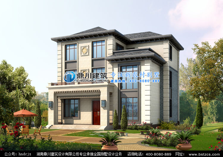 當前位置: 首頁 > 設計案例 > JL035漂亮的農村三層新中式別墅設計圖紙外觀效果圖,鼎川建筑新中式自建別墅圖紙設計