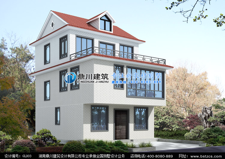 GL003三層帶露臺(tái)農(nóng)村自建房設(shè)計(jì)圖效果圖,經(jīng)濟(jì)型三層房屋設(shè)計(jì)圖外觀效果圖