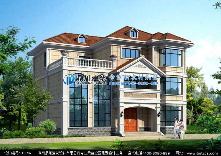 XC094三層簡歐別墅設計圖紙外觀效果圖,鼎川建筑三層農村別墅私人定制設計