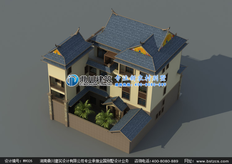 MW026四層帶商鋪傣式風格自建別墅設計圖紙效果圖,四層傣式房屋建筑設計圖效果圖