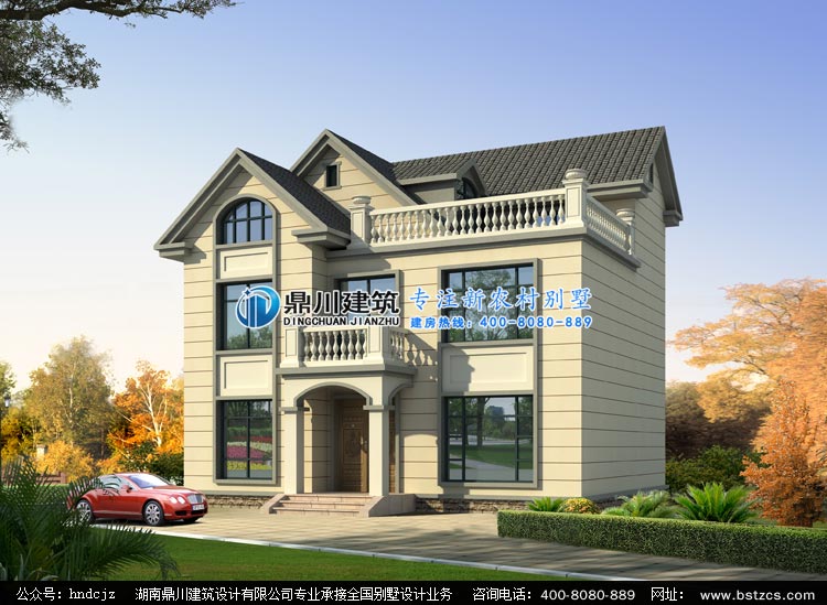 E0204三層帶露臺農村別墅設計外觀效果圖,鼎川農村別墅圖紙私人定制設計