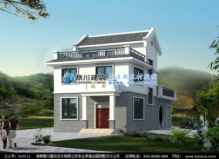 當前位置: 首頁 > 設計案例 > HY012三層帶露臺中式別墅設計外觀效果圖,鼎川建筑中式房屋設計圖