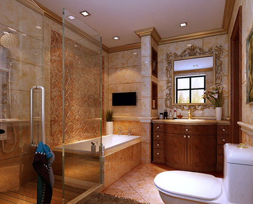 衛生間推拉門:衛生間裝上推拉門好處多,第一門框是金屬材質不怕水,第二門推開的時候是貼著墻壁,不會占用衛生間空間。