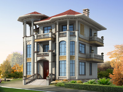 E0195大氣的三層歐式別墅設計外觀效果圖,鼎川建筑私人定制