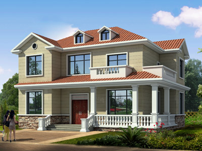 XC037二層帶露臺農村自建別墅外觀效果圖,鼎川建筑二層別墅