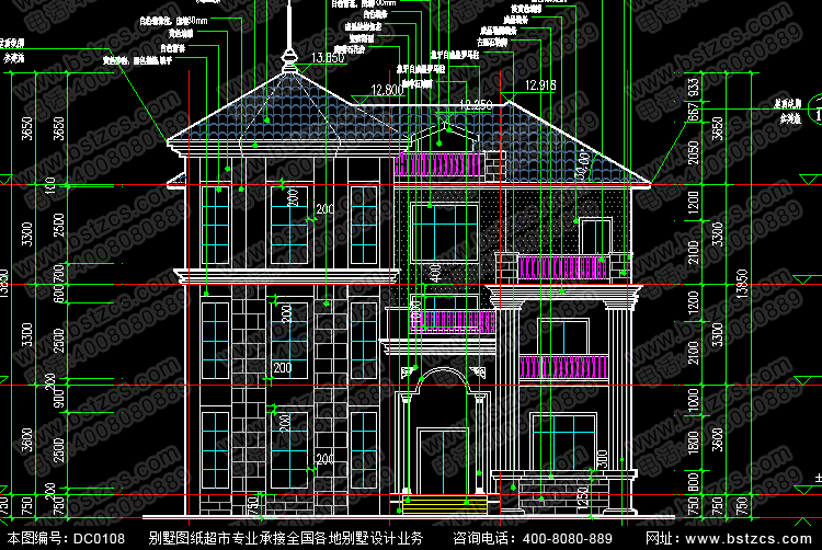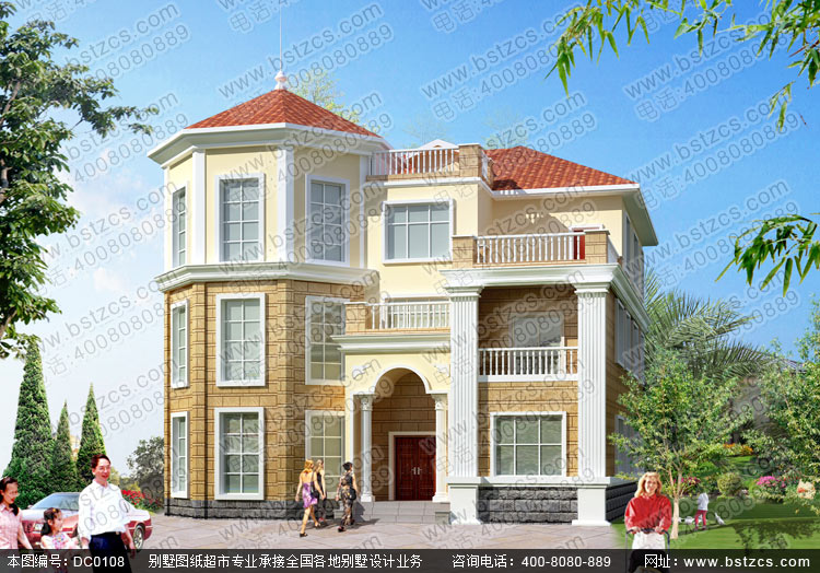 漂亮的三層復式歐式別墅圖紙效果圖施工圖_別墅圖紙超市,別墅設