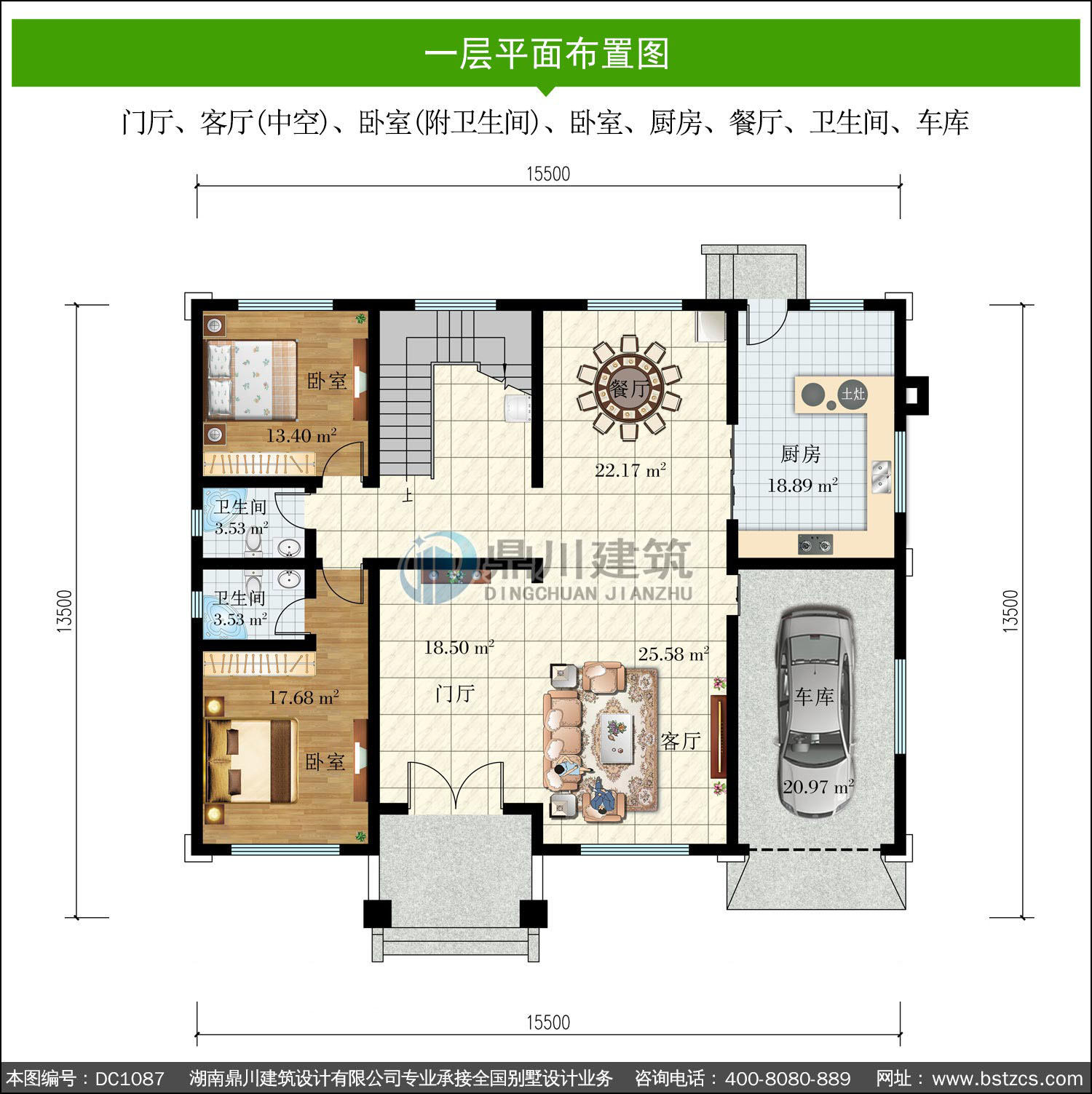 歐式二層車庫別墅效果圖及施工圖紙_農村自建別墅設計,鼎川建筑