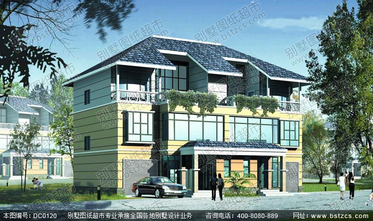 三層平屋頂雙拼別墅效果圖與施工圖_別墅設計圖紙,新農村別墅,