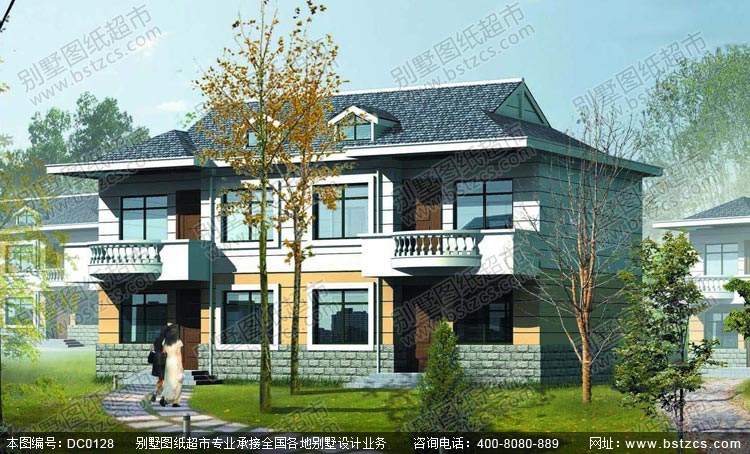 農村二層半雙拼自建房設計圖效果圖_別墅設計圖紙,農村房屋設計