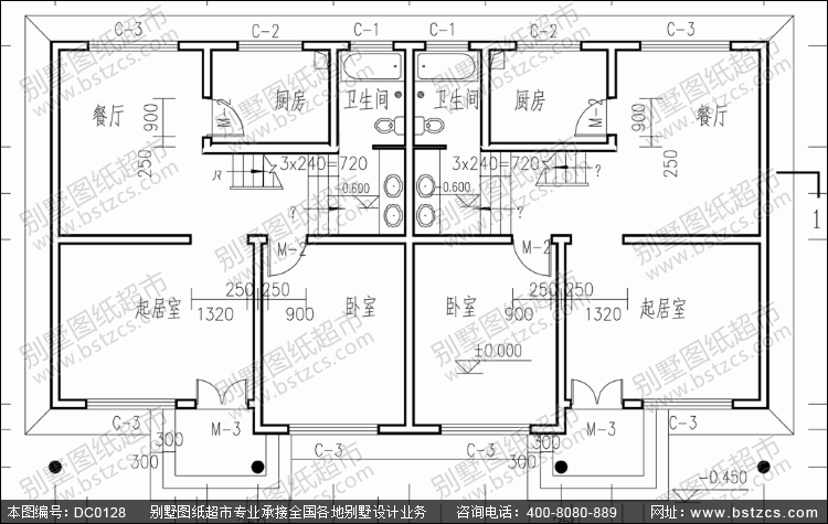 二層雙拼別墅建筑施工圖_別墅設計圖紙,農村房屋設計圖,農村自建房設計