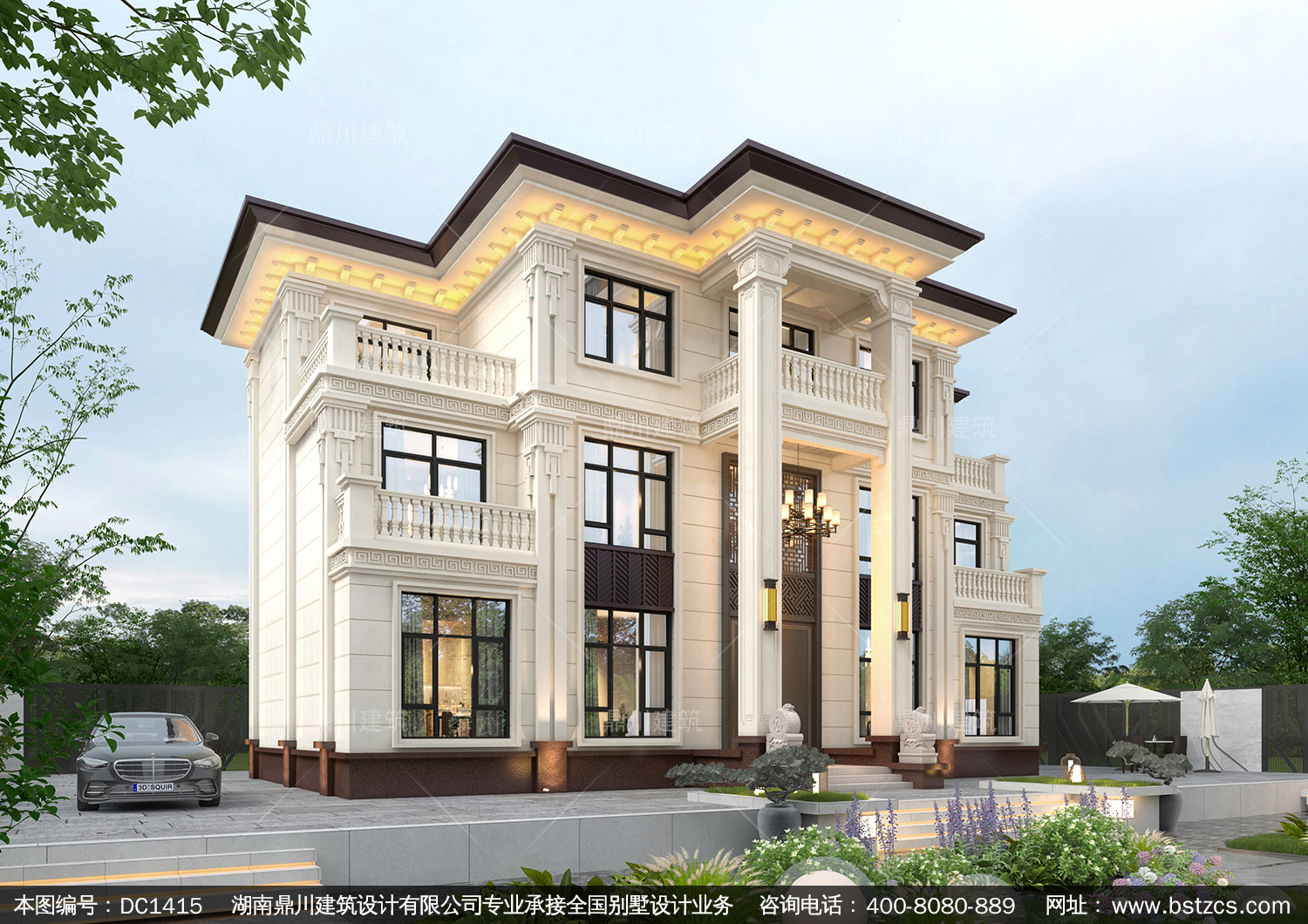 大氣新中式三層別墅設計圖紙及效果圖_農村自建房設計,鼎川建筑