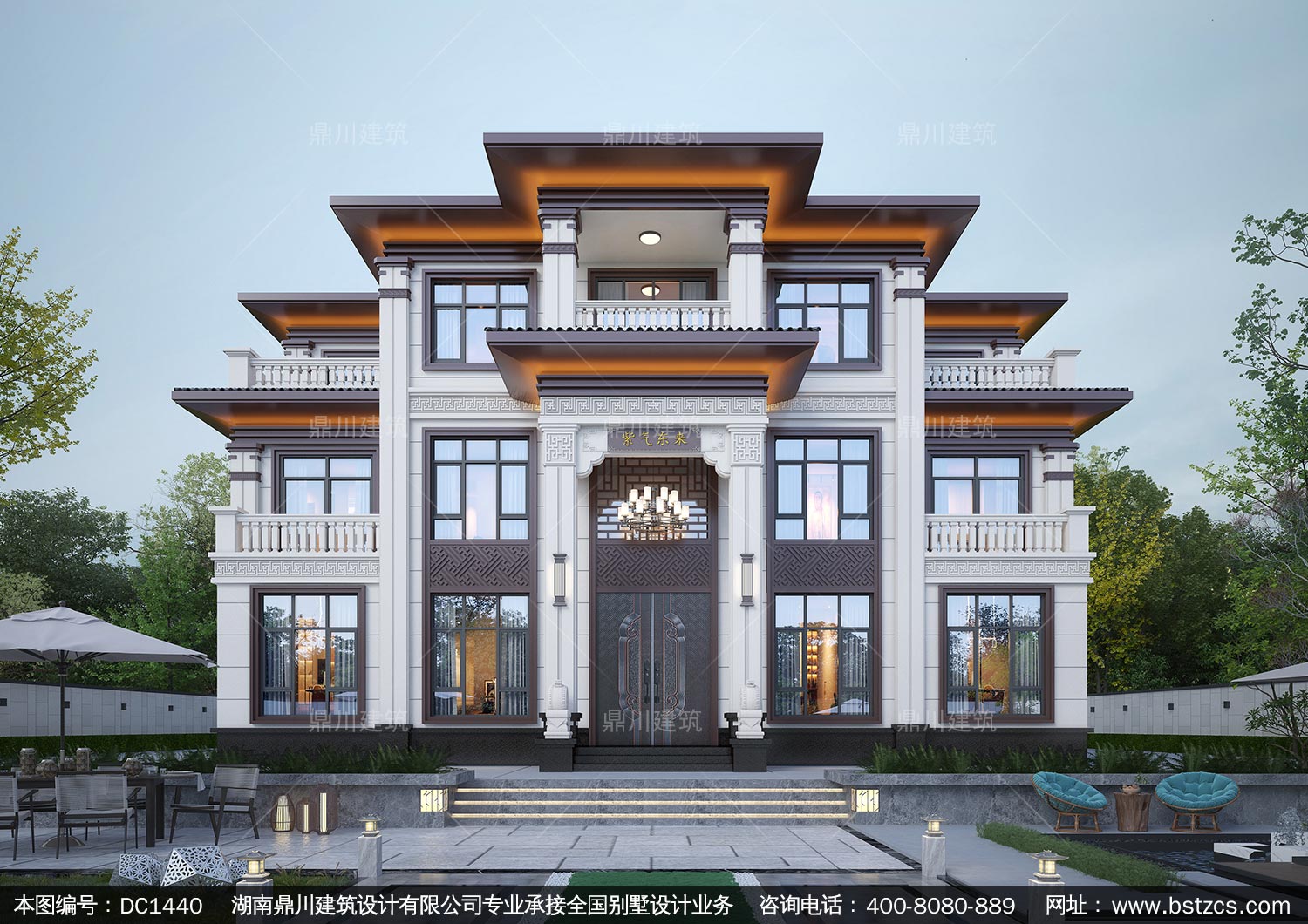 大氣新中式三層別墅效果圖及施工圖紙_農村自建別墅設計,鼎川建