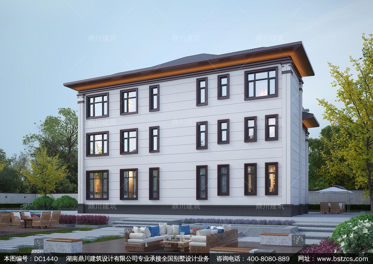 新中式三層復式別墅施工圖紙及效果圖_農村自建別墅設計,鼎川建