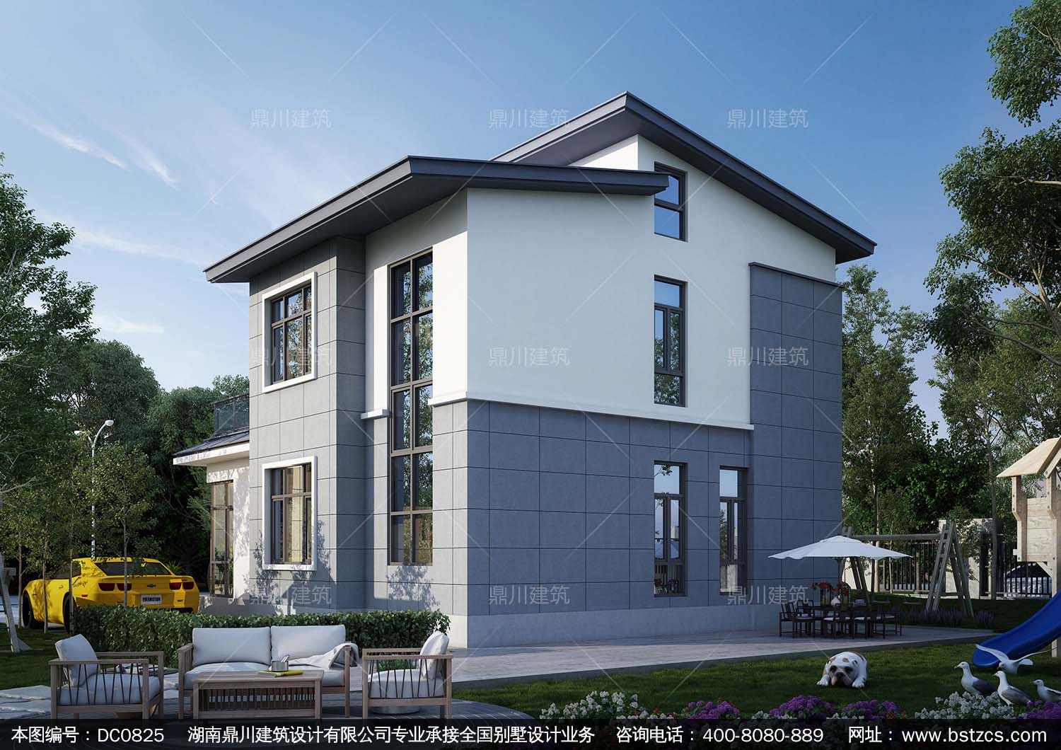 現代簡約二層小別墅施工圖紙及效果圖_新農村自建別墅設計,鼎川建筑
